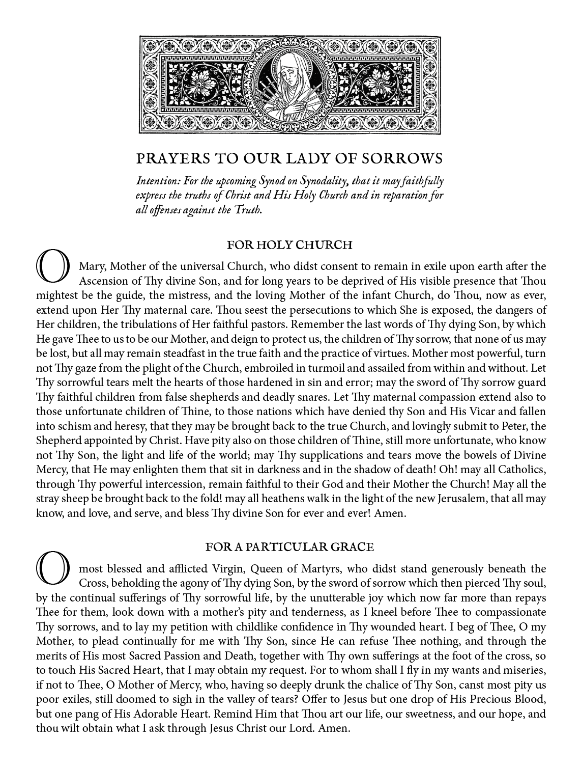 Click the image (or the button below) to download and print your own copy, which you can use here at Mass or at home during the month dedicated to the Sorrows of the Blessed Virgin Mary.